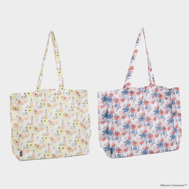 リトルミイと花柄イラストがプリントされた華やかなデザインのショッピングバッグです。内ポケットにコンパクトに畳め、普段使いしやすいサイズと形状です。素材は耐久性にすぐれメンテナンスしやすいポリエステル素材です。全2色 SIZE:W300×H540mm 素材:本体:ポリエステル