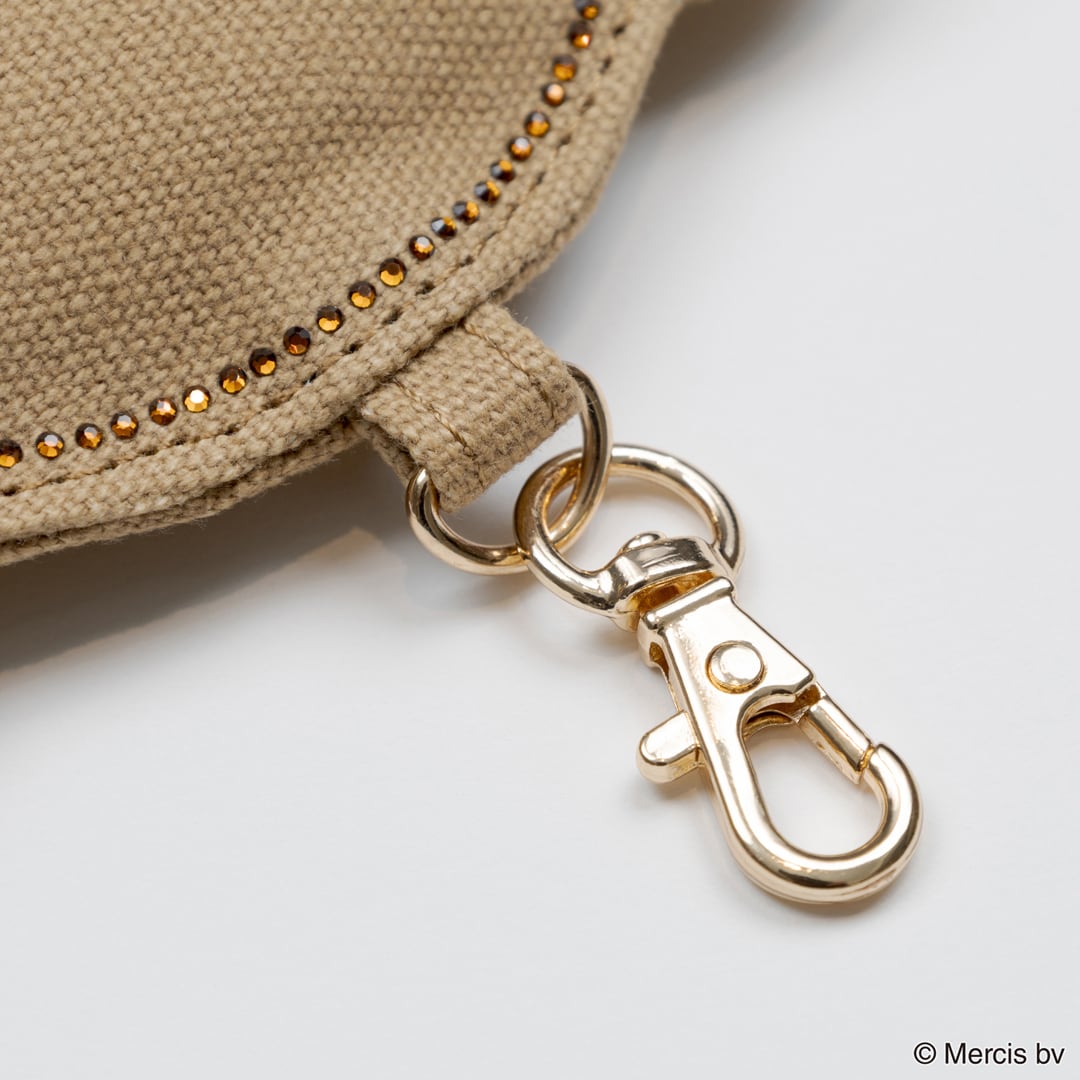 ミッフィーとボリスのお顔をストーンで表現したチャームです。合皮生地にストーンがキラキラと輝く存在感のあるチャームです。上部にカニカン付きで、ストラップやハンドルに付けてご使用いただけます。全2柄。SIZE:W75~117×H75~105mm 素材:本体:綿、ガラス