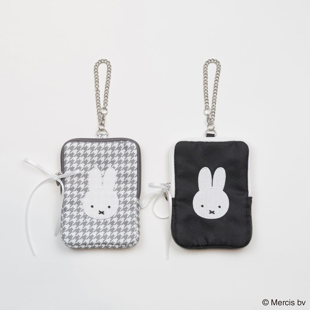 千鳥格子とモノトーンカラーがシンプルなシリーズ。ミッフィーは刺繍で表現し、リボン使いもポイントです。カードや小銭が入るサイズで、裏面ポケットが透明のため、見せたいものの収納にもおすすめです。全2柄 SIZE:W85×H120×D10mm 素材:表生地:ポリエステル/塩化ビニル、裏生地:ポリエステル