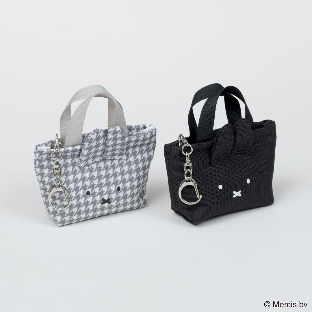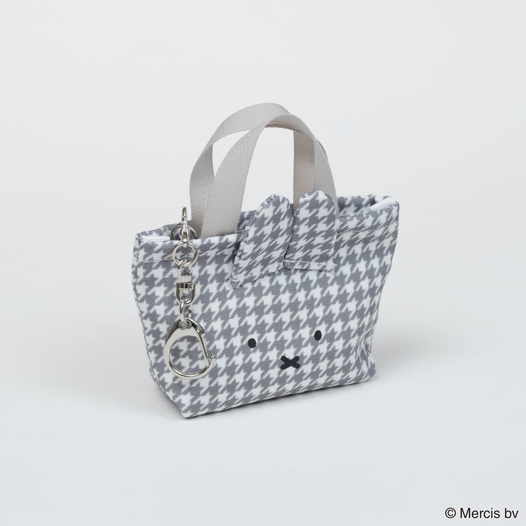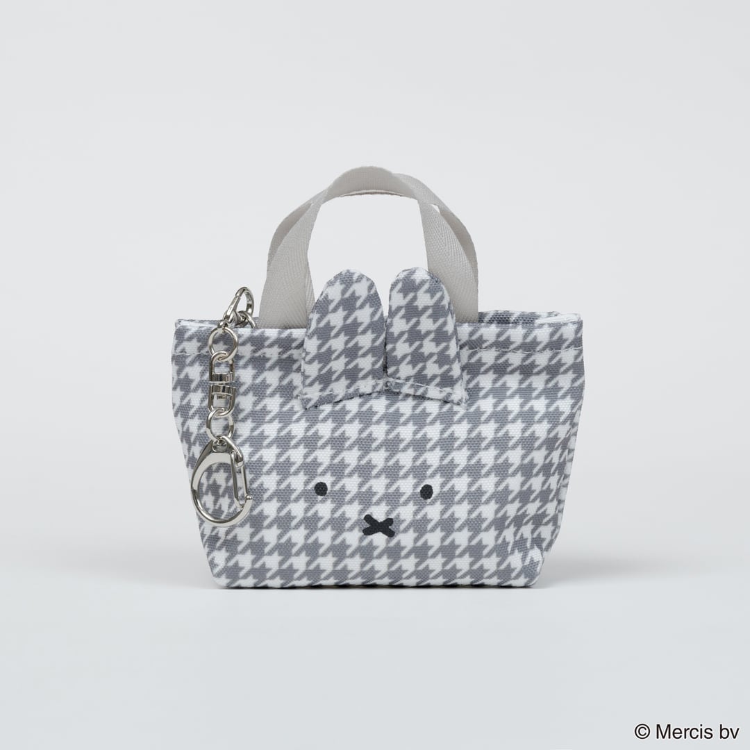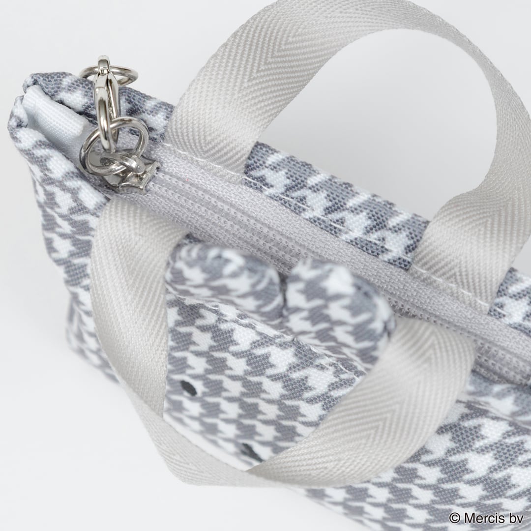 千鳥格子とモノトーンカラーがシンプルなミッフィーシリーズ。ワイヤレスイヤホンが入り、チャームとしてバッグに取り付け可能です。全2柄 SIZE:W110(70)×H65×D40mm 素材:本体:ポリエステル