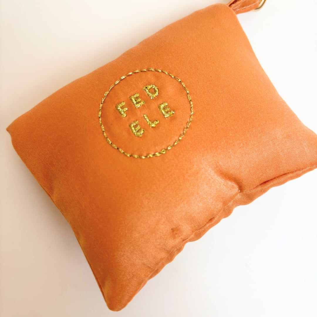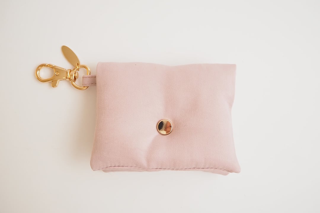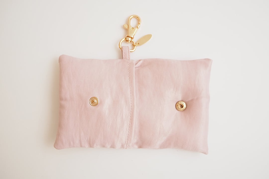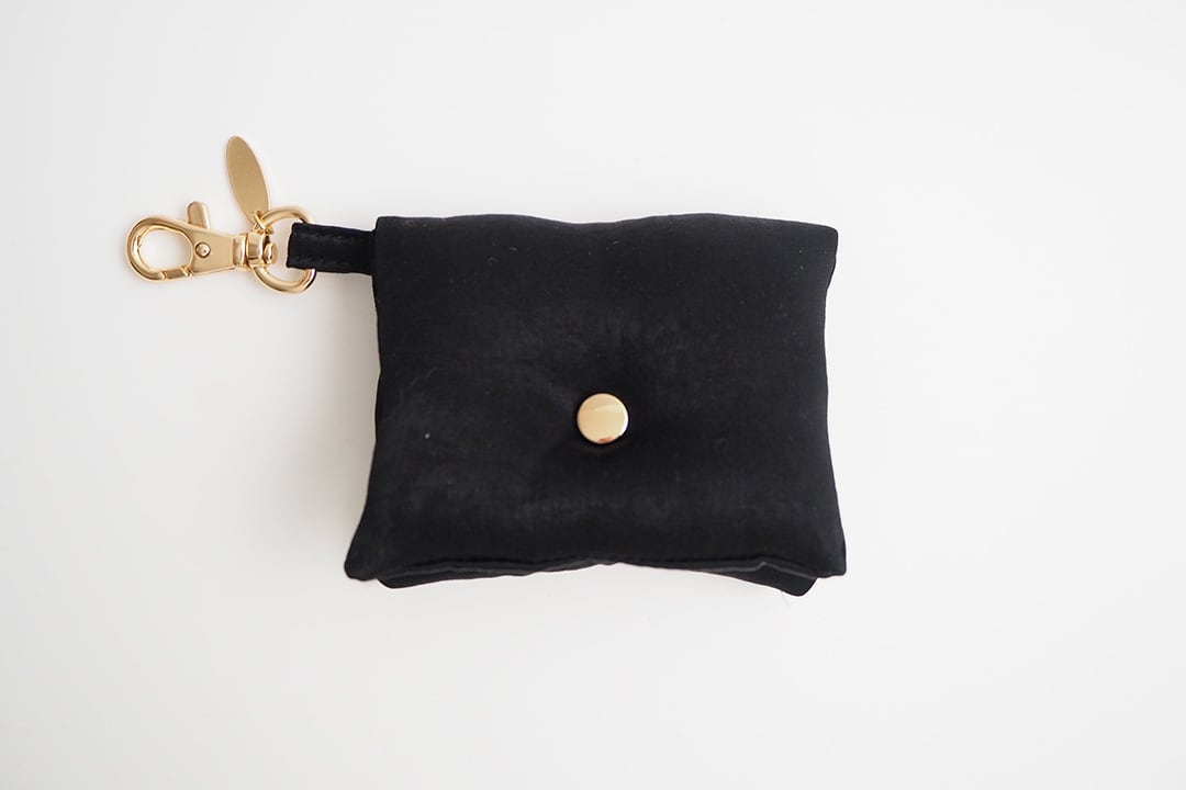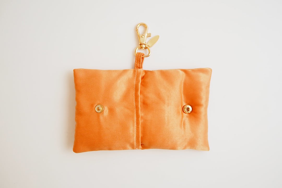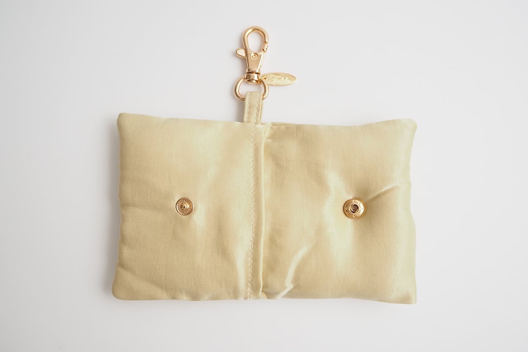 マットサテンを使用したかわいらしいミニポーチです。クッションのようにふんわり柔らかくイヤホンケースやリップなど小物を収納できます。ハンギングもできて持ち運びに便利。 SIZE:本体:W90×H80mm 素材:ポリエステル、亜鉛合金