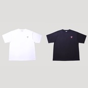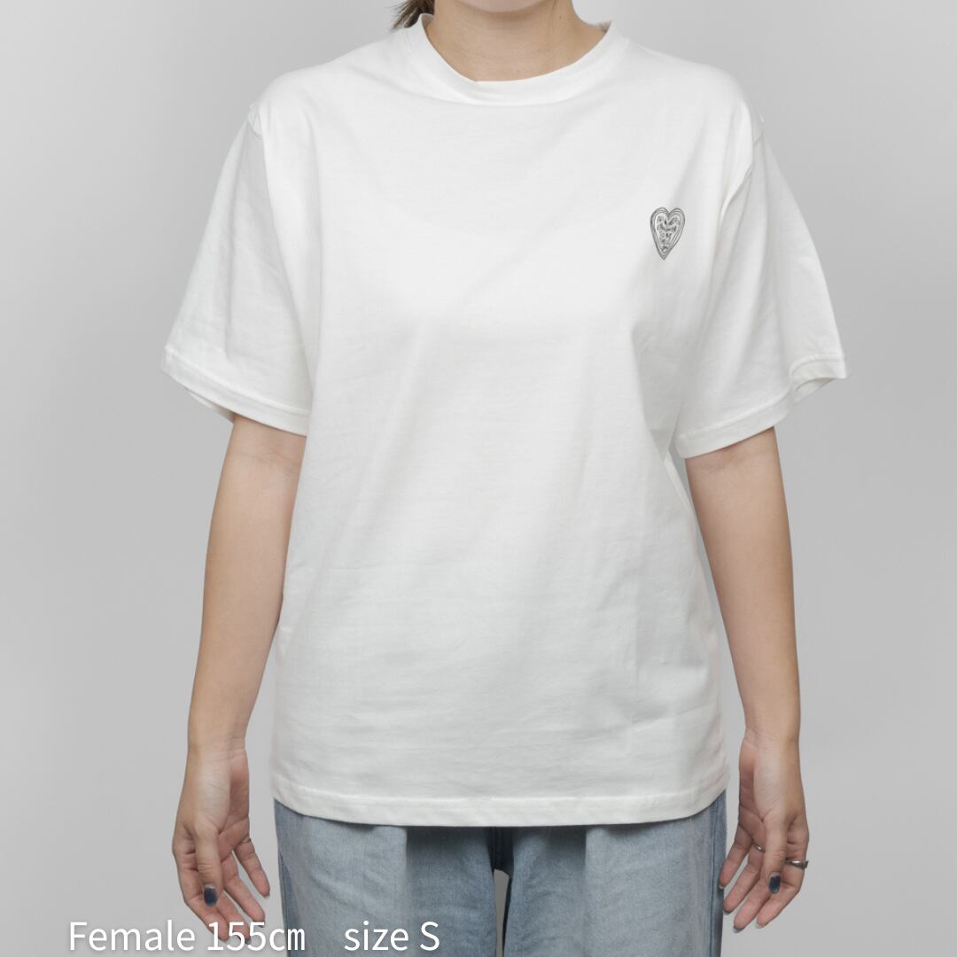 胸にオリジナルロゴを小さく、背面には同じロゴを大胆にプリントしたユニセックス半袖Tシャツ。