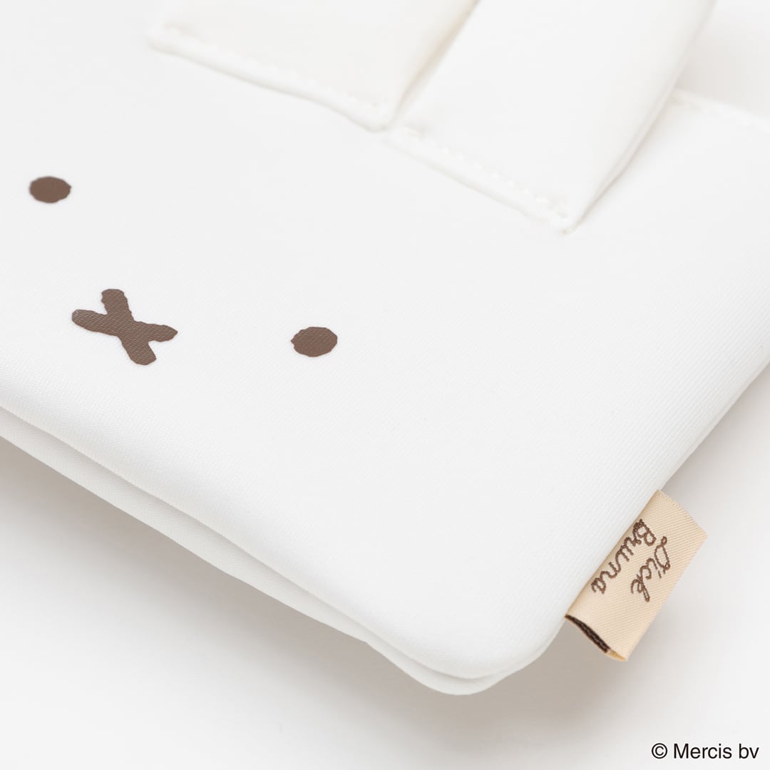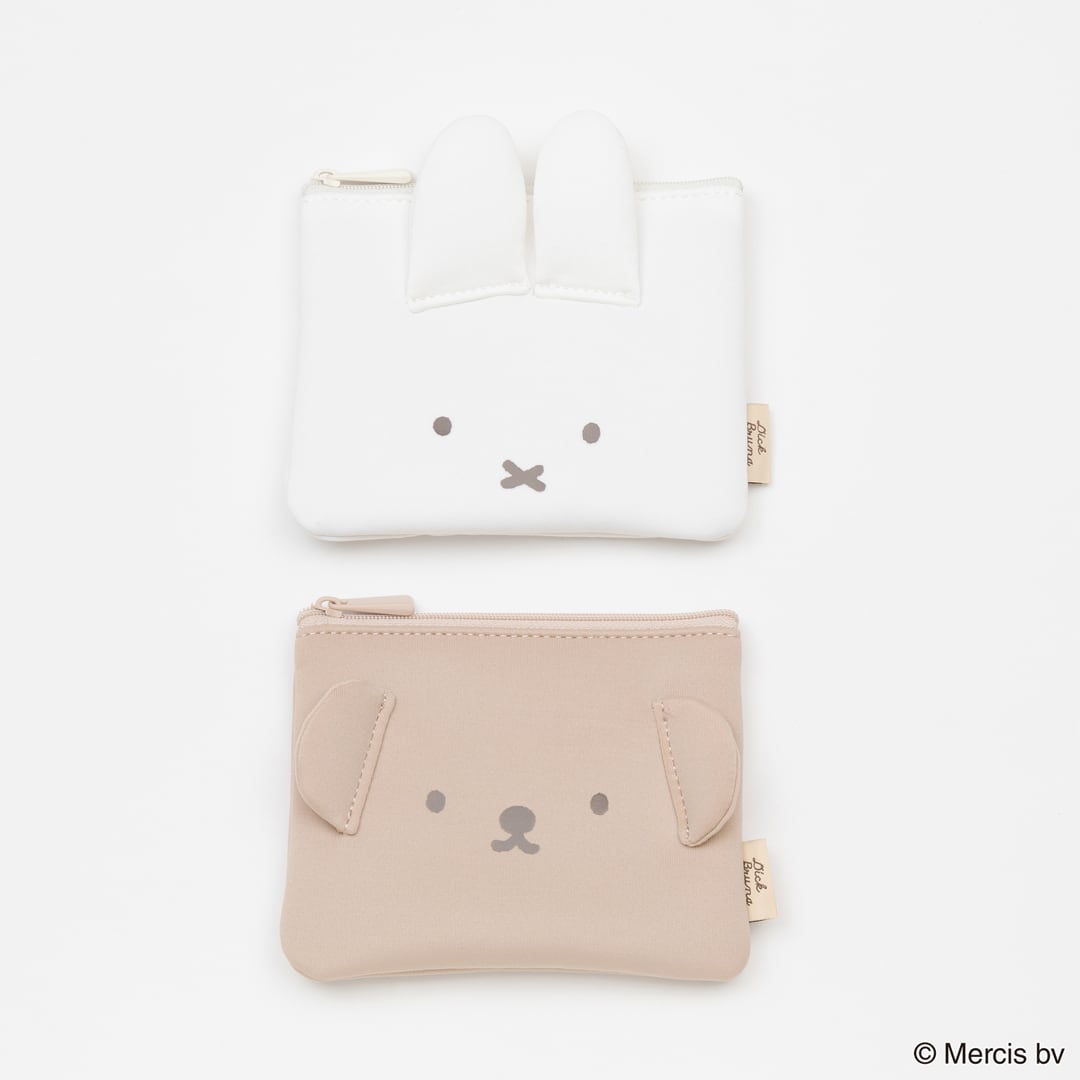 クッション性のあるボンディング生地を使用し、ミッフィーとボリスの耳が付いたシンプルながらインパクトのあるシリーズ。目薬やコスメが入り、デイリー使いしやすいポーチです。全2柄 SIZE:W140×H110mm 素材:本体:ポリエステル