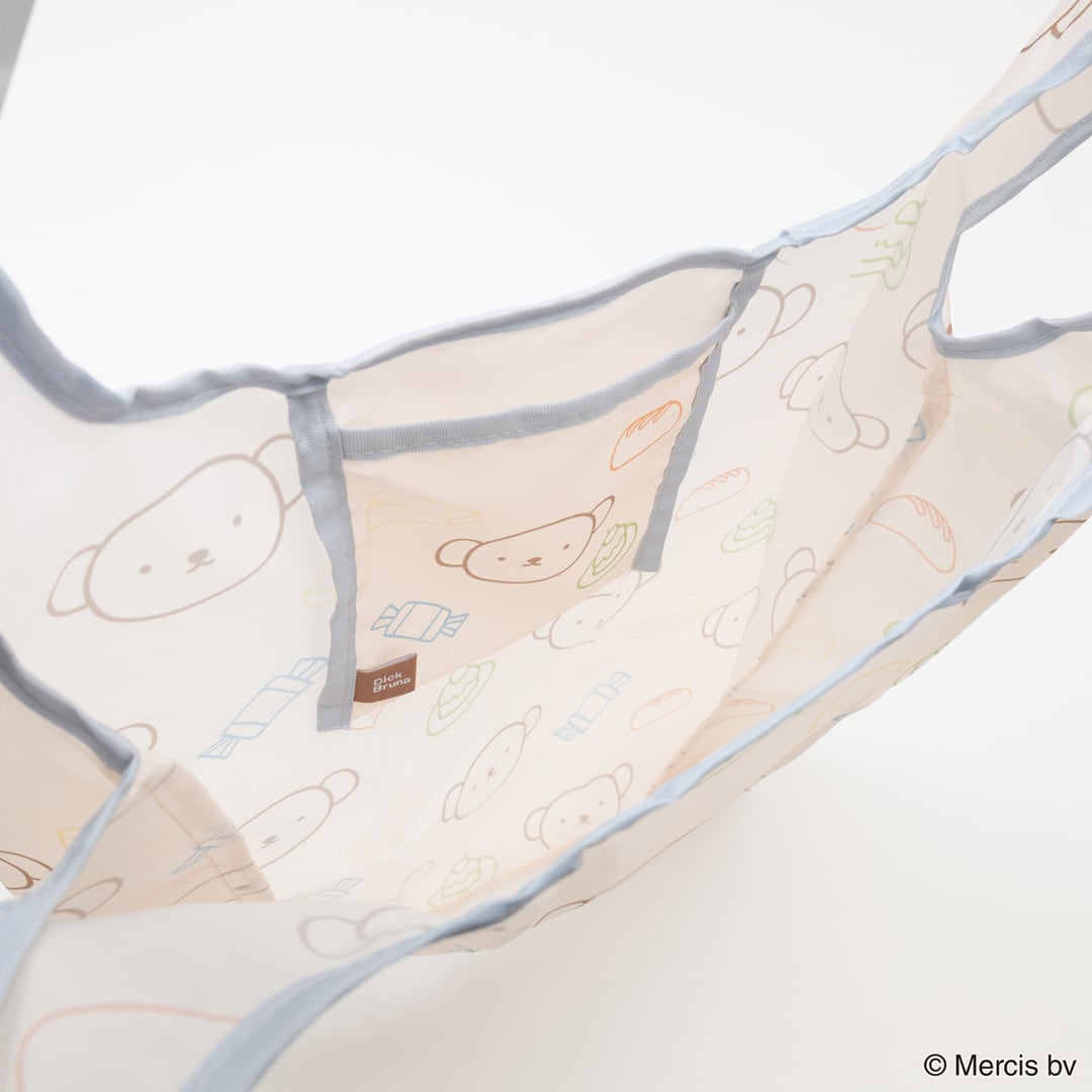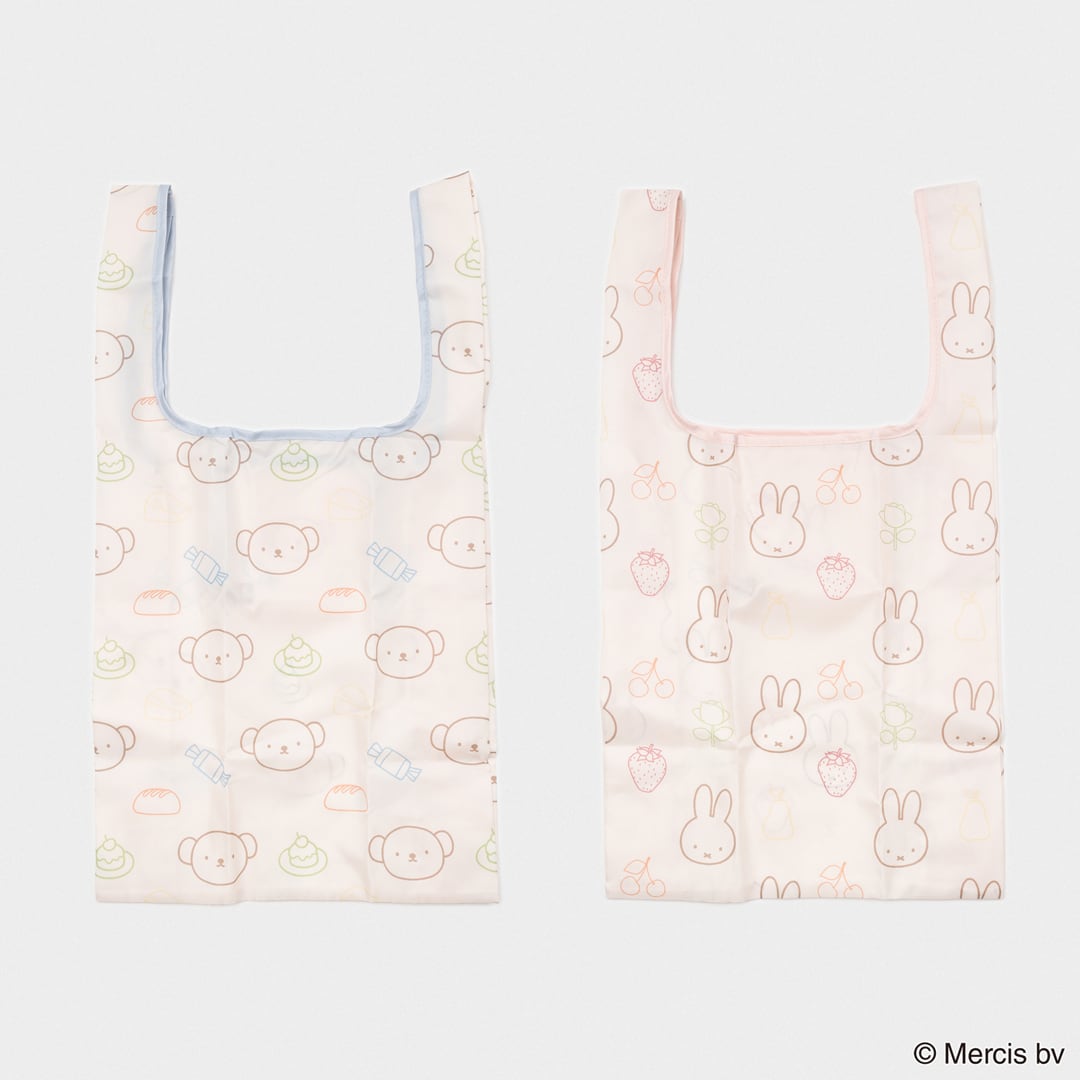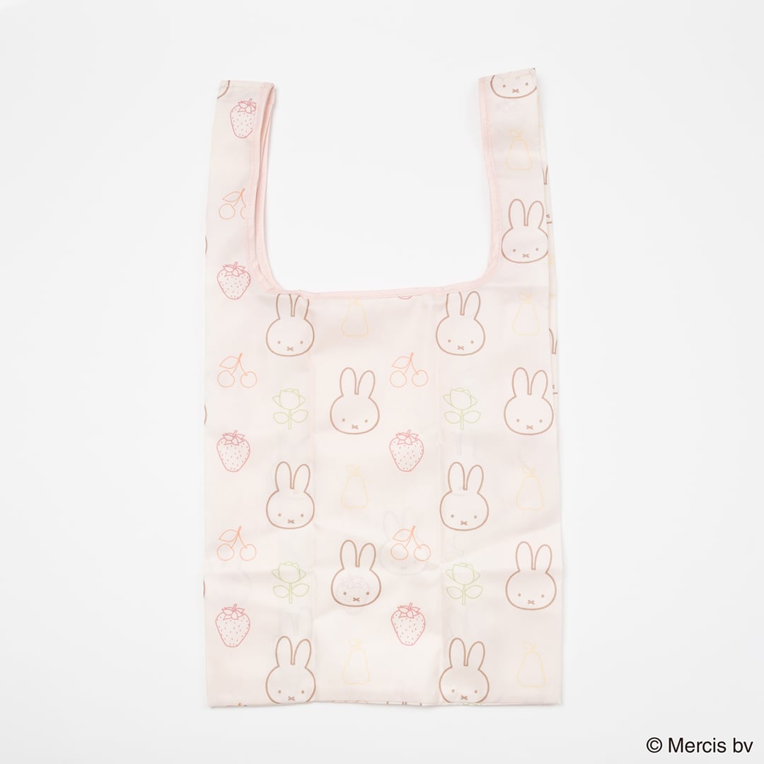 ミッフィー・ボリスとフルーツなどのモチーフをカラフルなライン刺繍で表現。コンパクトに畳む事ができ、ちょっとしたお買い物に使いやすいサイズ感です。全2柄 SIZE:W300×H540mm 素材:本体:ポリエステル