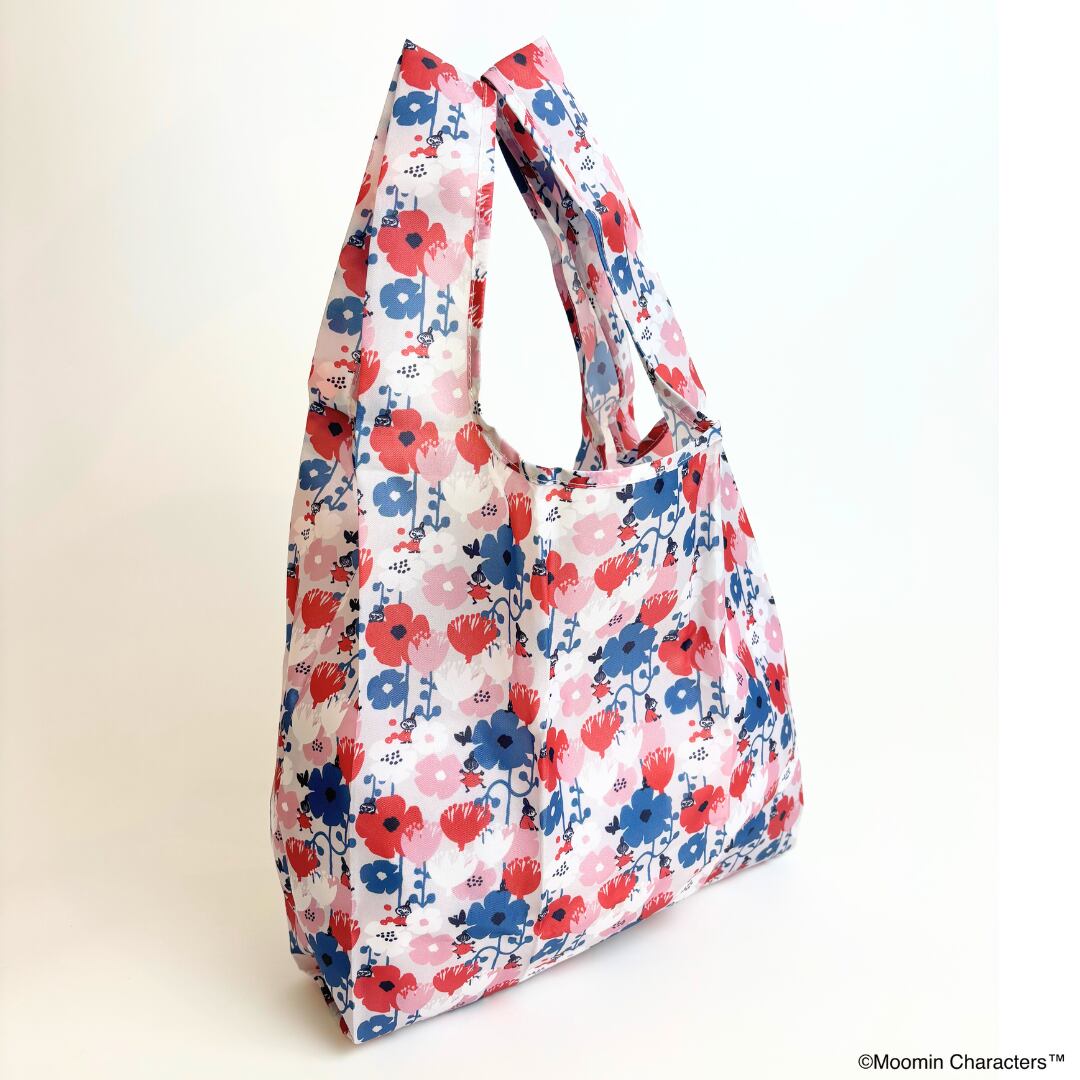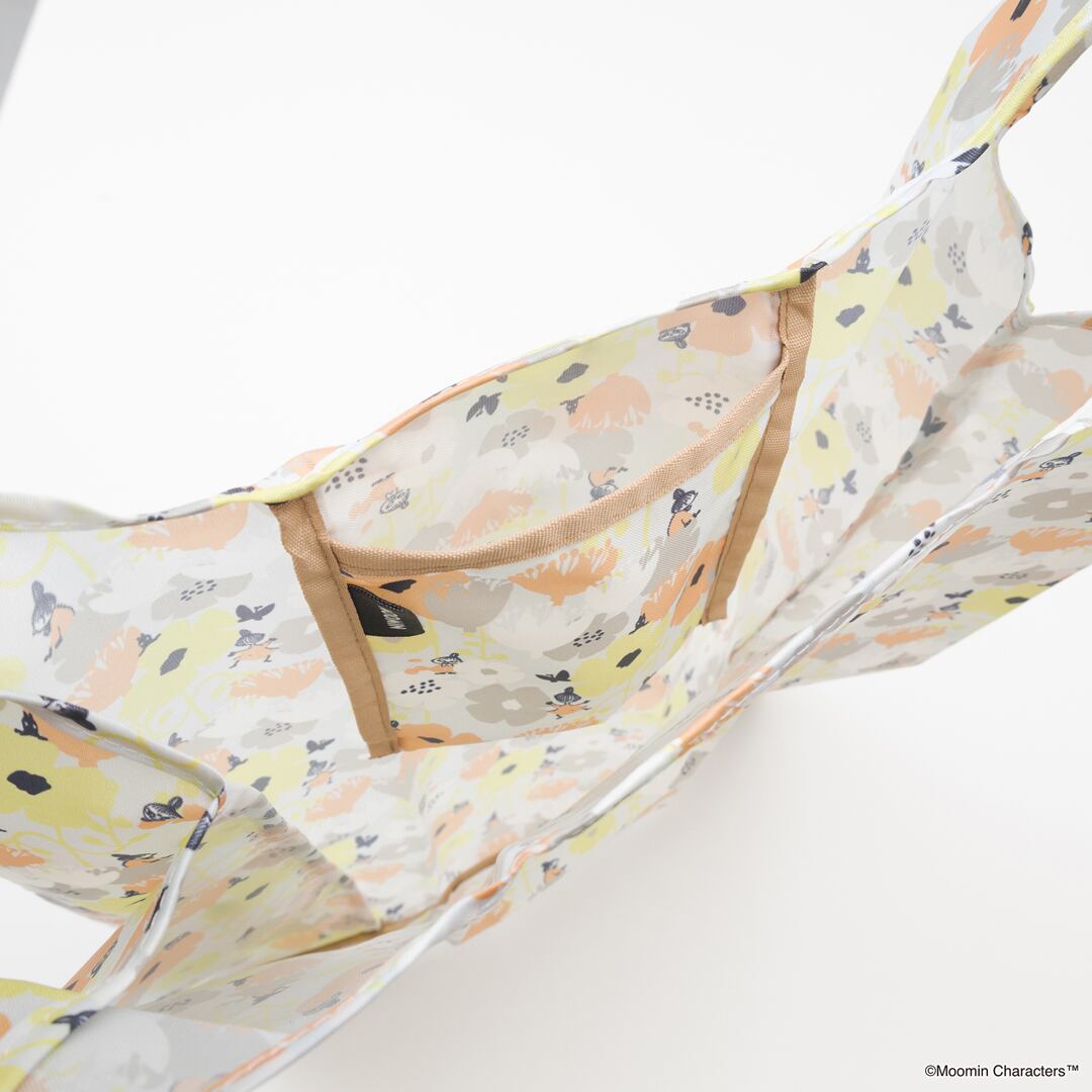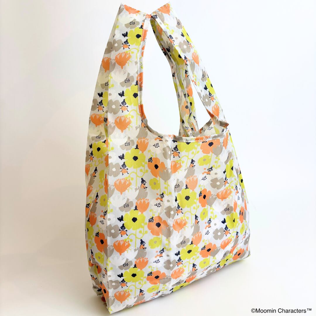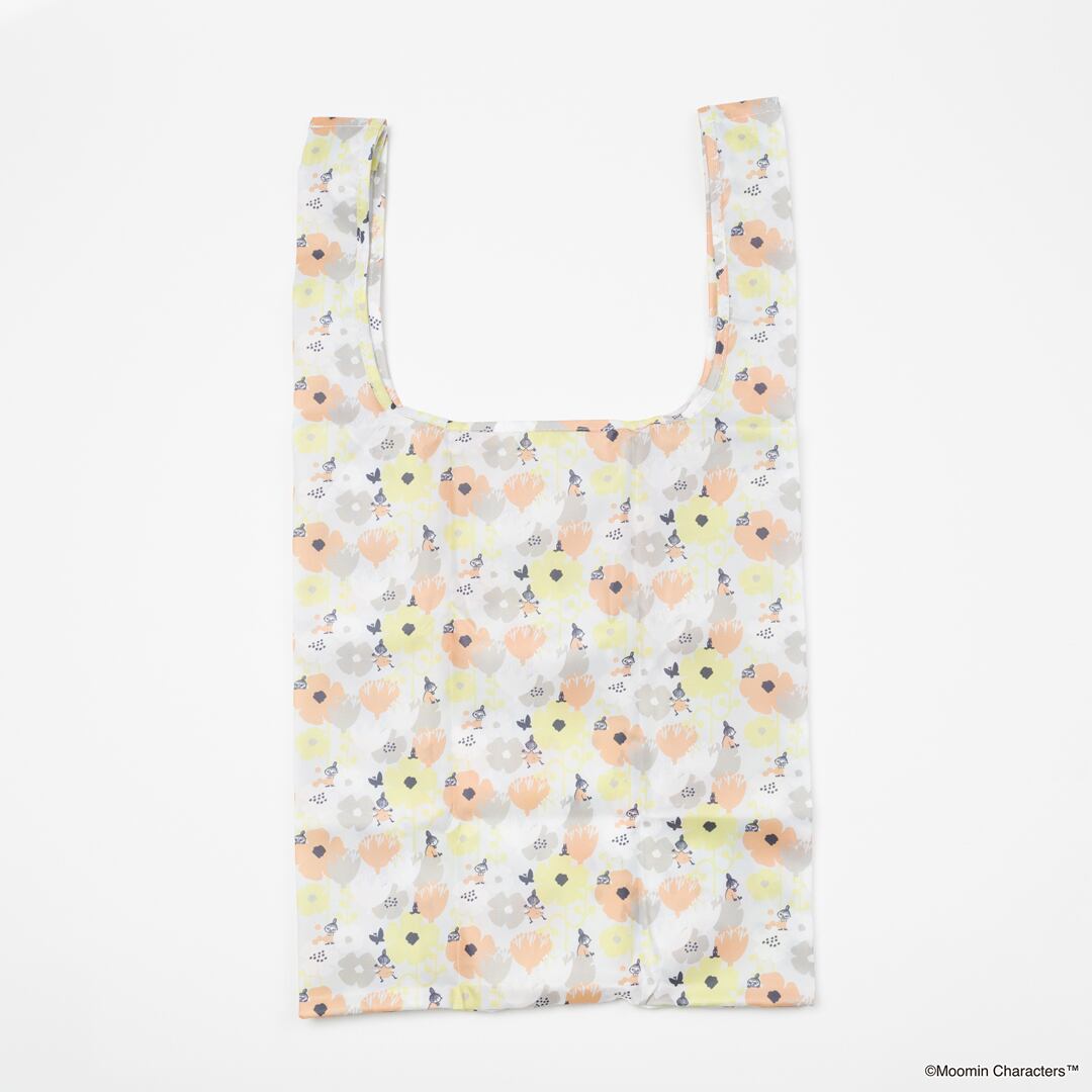 リトルミイと花柄イラストがプリントされた華やかなデザインのショッピングバッグです。内ポケットにコンパクトに畳め、普段使いしやすいサイズと形状です。素材は耐久性にすぐれメンテナンスしやすいポリエステル素材です。全2色 SIZE:W300×H540mm 素材:本体:ポリエステル