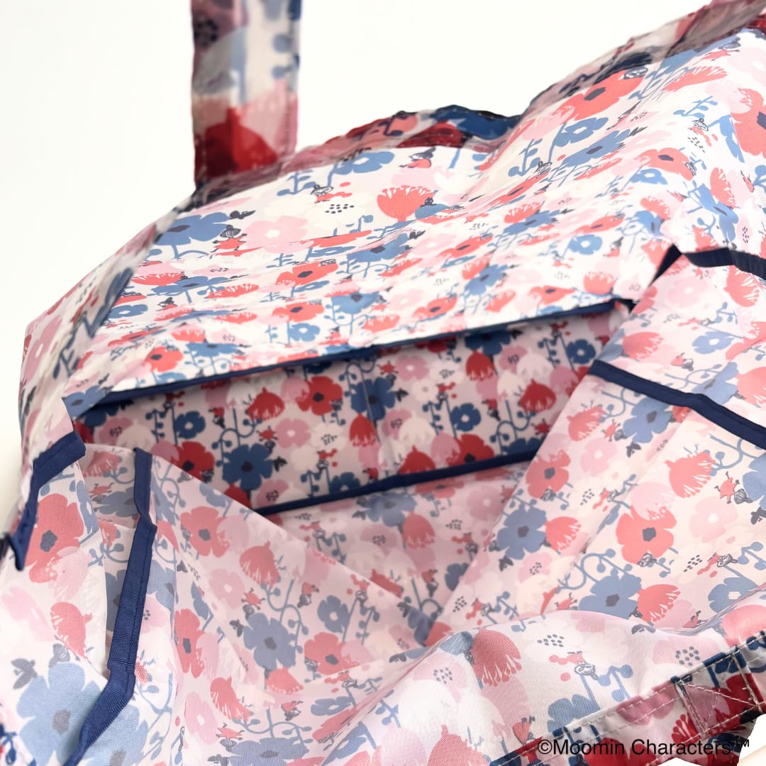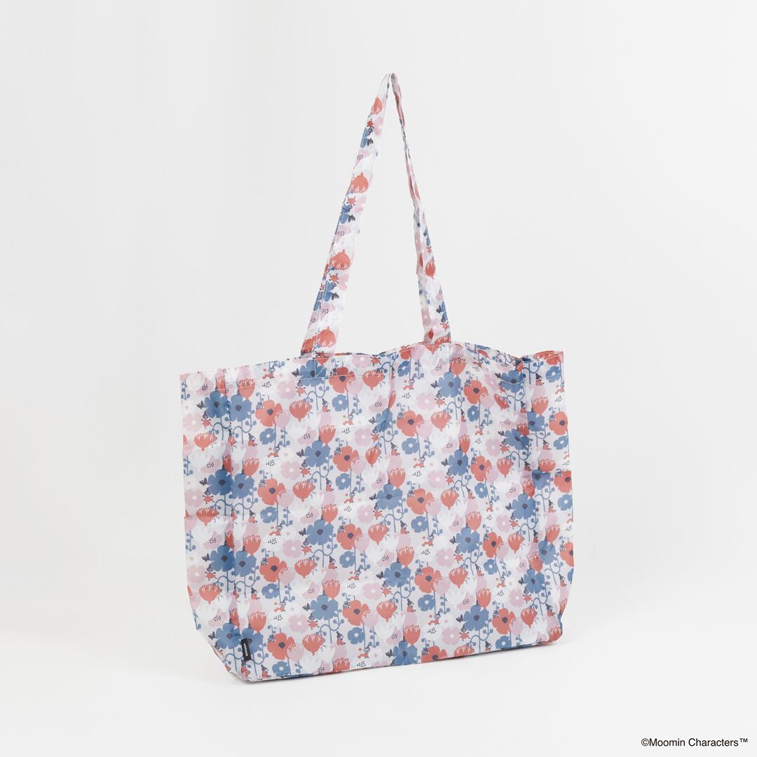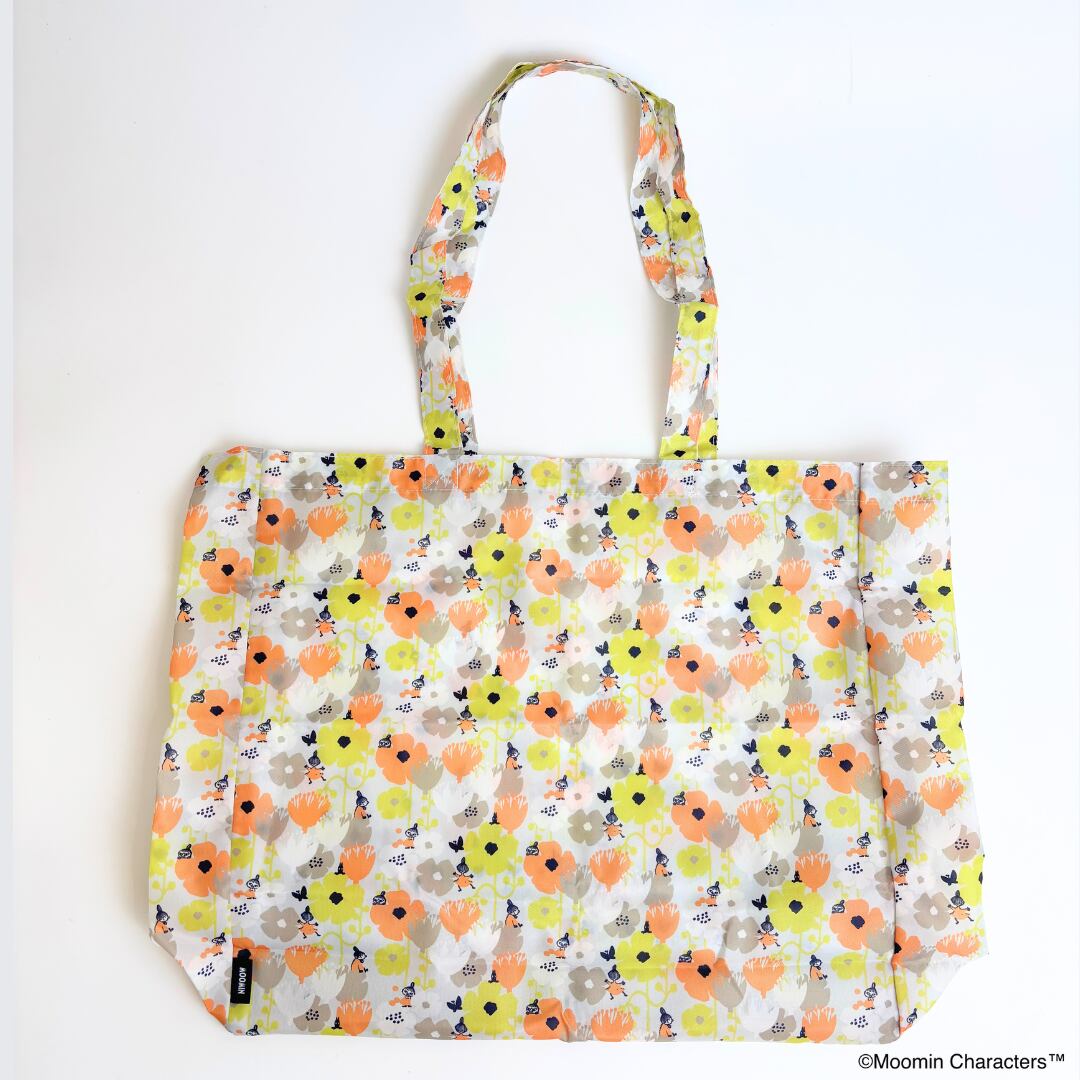 リトルミイと花柄イラストがプリントされた華やかなデザインのショッピングバッグです。底板付きでたっぷり収納できます。使わない時は、底板部分を半分に畳んで、コンパクトに収納できます。素材は耐久性に優れメンテナンスしやすいポリエステル素材です。全2色 SIZE:W380×H360×D100mm 素材:本体:ポリエステル