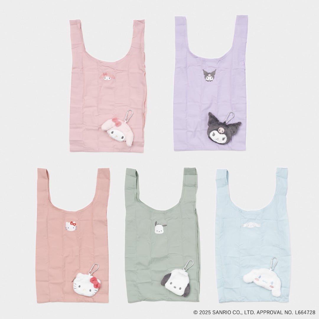 ショッピングバッグはちょっとしたお買い物に最適なサイズです。全5柄 SIZE:バッグサイズ:W260×H500mm、ポーチサイズ:約W90~145×H70~105mm 素材:バッグ:本体:ナイロン、ポーチ:表生地:ポリエステル、裏生地:ポリエステル c 2026 SANRIO CO., LTD. APPROVAL NO. L664935