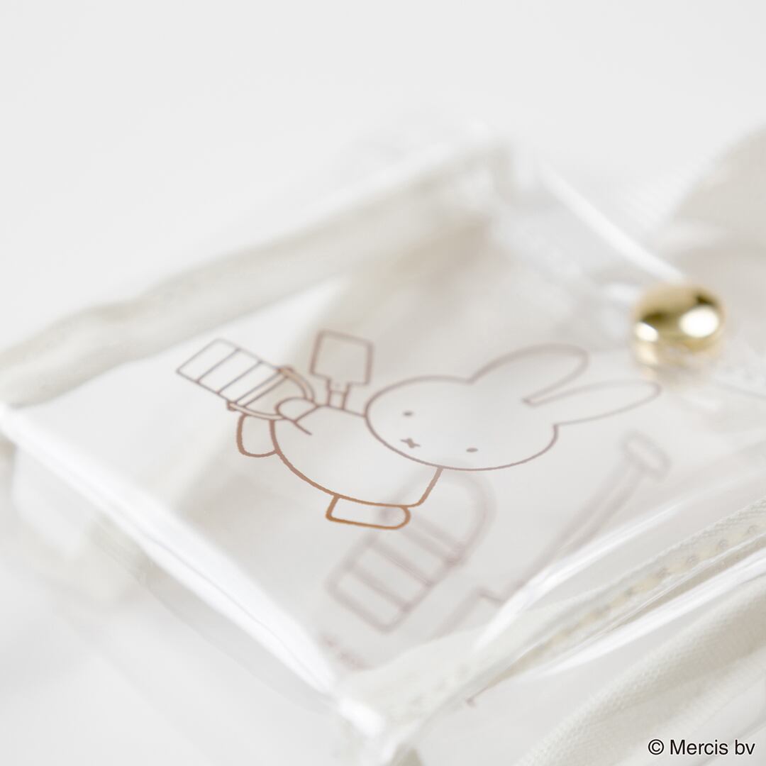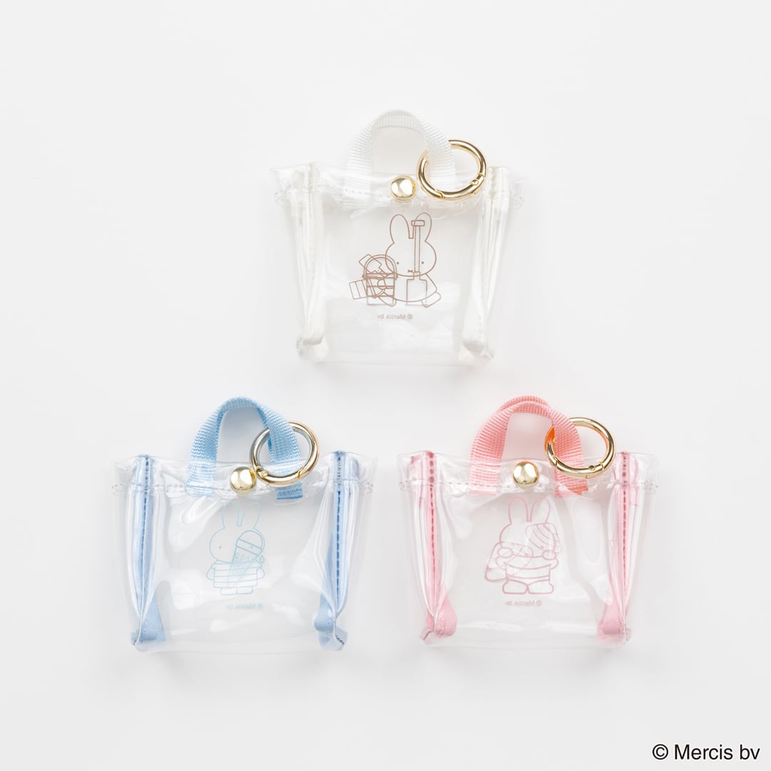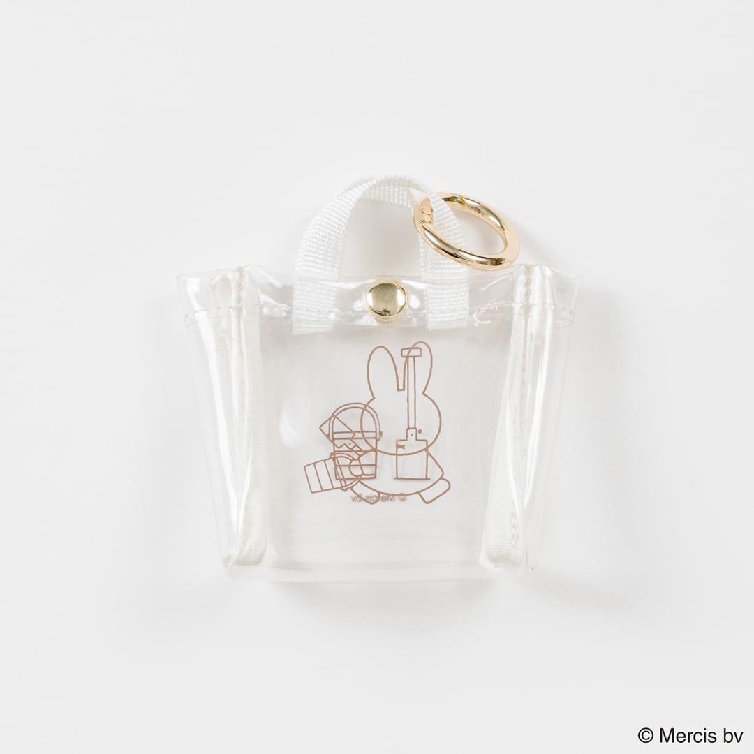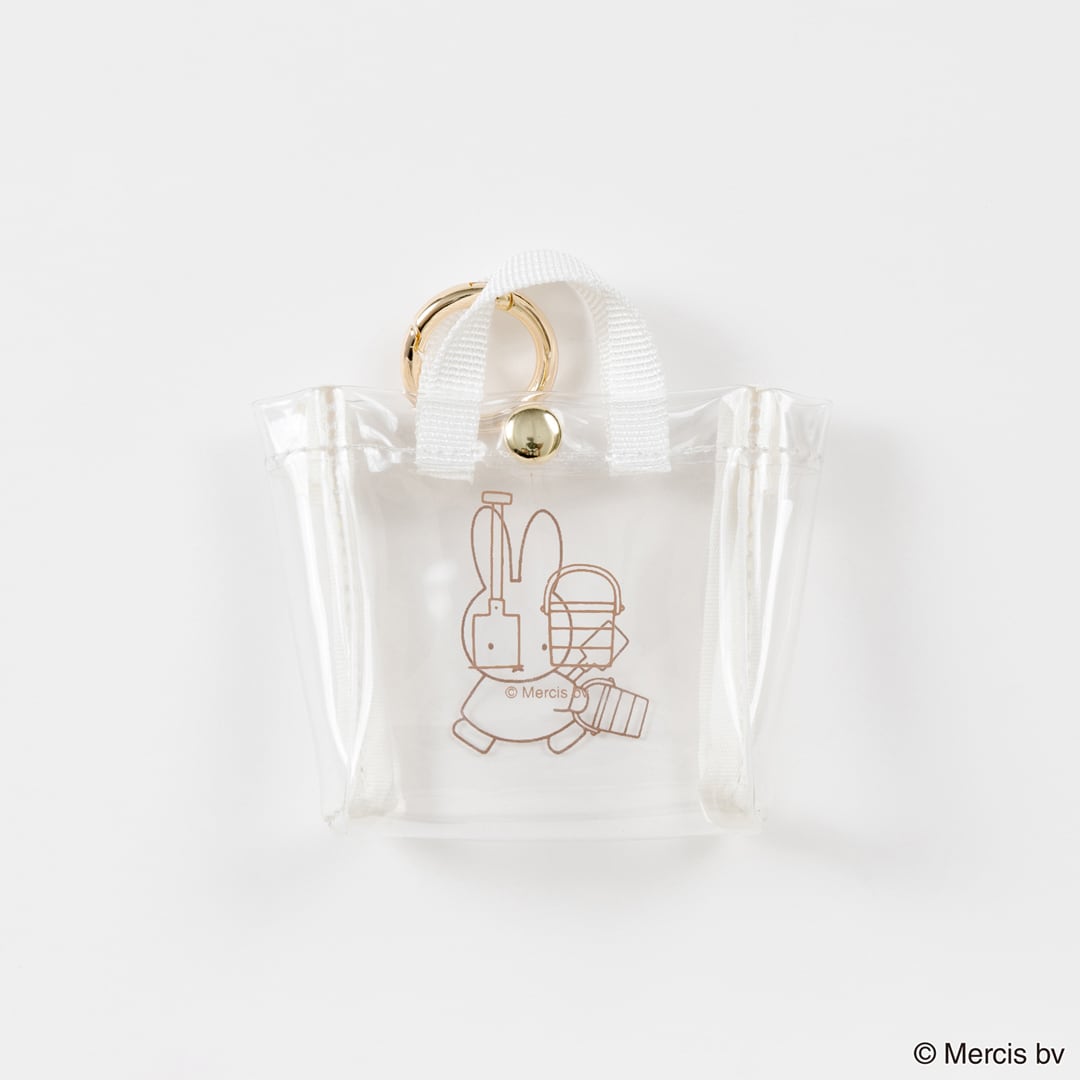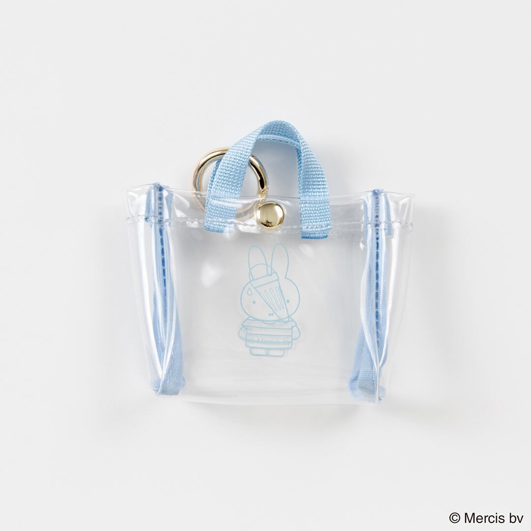 PVC素材を使用し、ミッフィーと夏らしいモチーフを組み合わせたプールバッグ風ミニチャーム。ボタン付きの為、イヤホンや飴など小物類の収納が可能です。全3柄 SIZE:W80×H80×D30mm 素材:本体:塩化ビニル