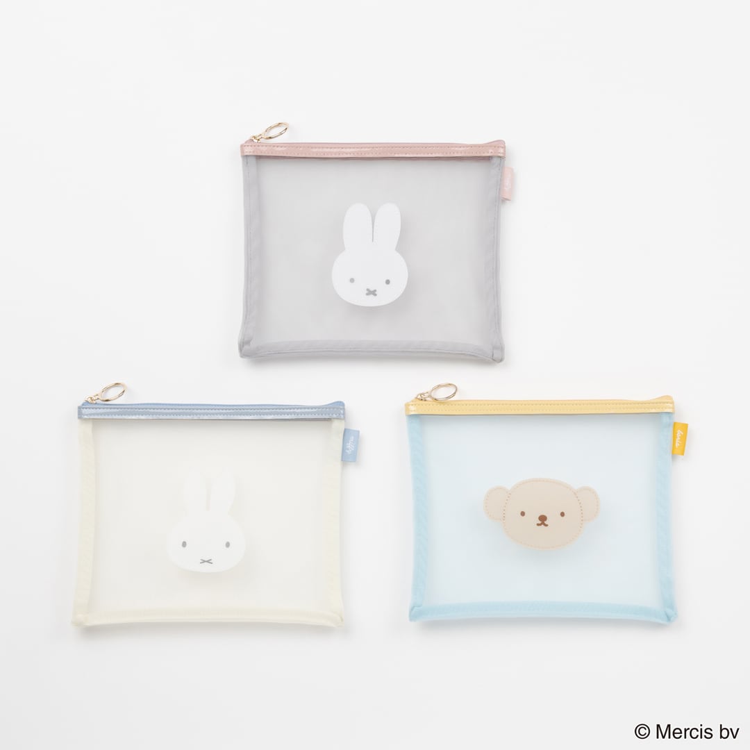 丸耳・とんがり耳のミッフィーとボリスのメッシュシリーズがバイカラーになって登場しました。ワッペン部分が夏らしいPVC素材です。日焼け止めやおくすり手帳など大きめのものがサッと入ります。全3柄 SIZE:W210×H170mm 素材:本体:ナイロン・合成皮革、ワッペン部分:塩化ビニル