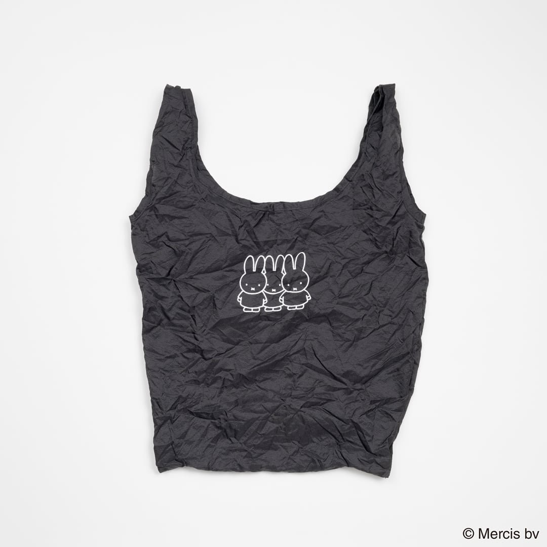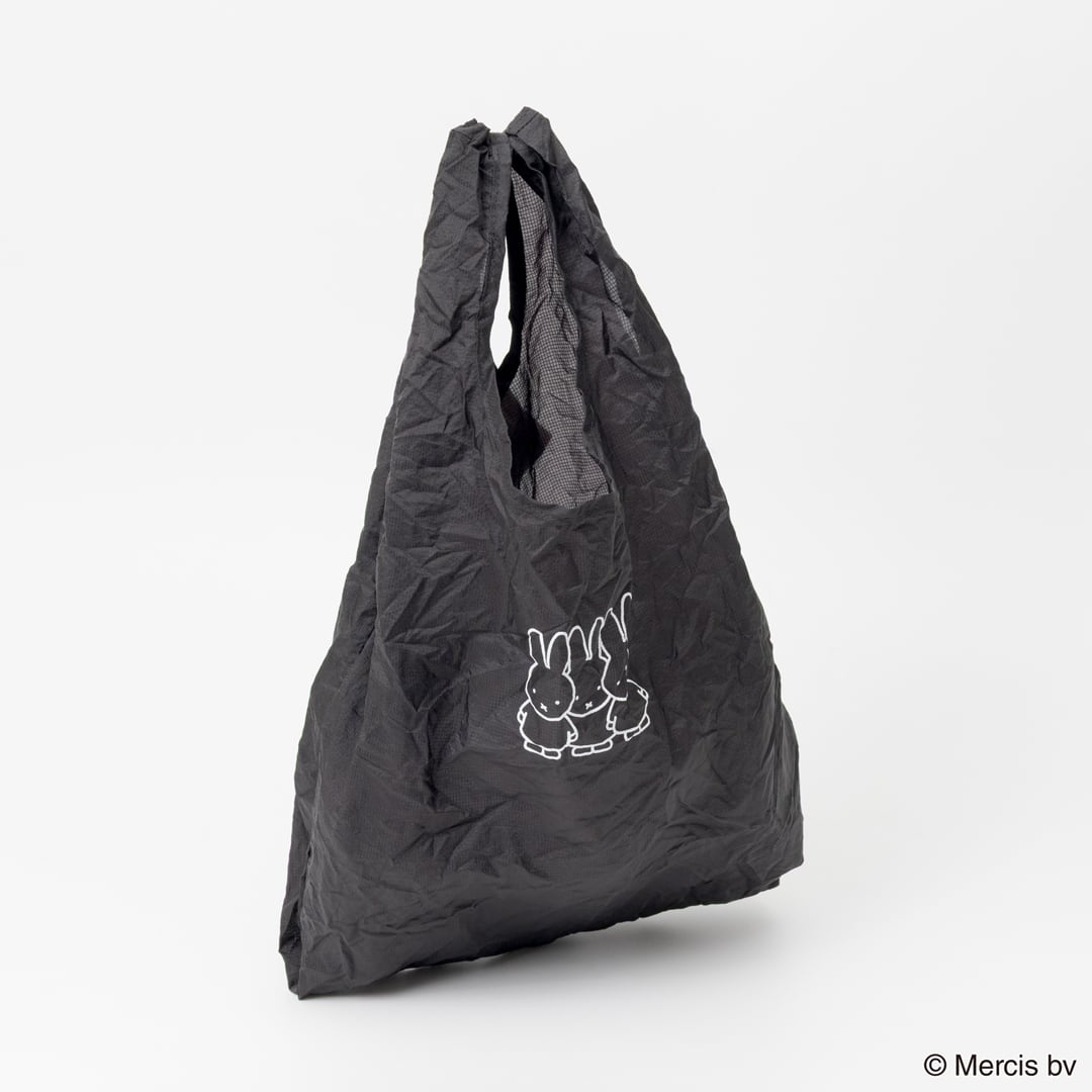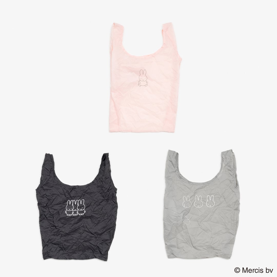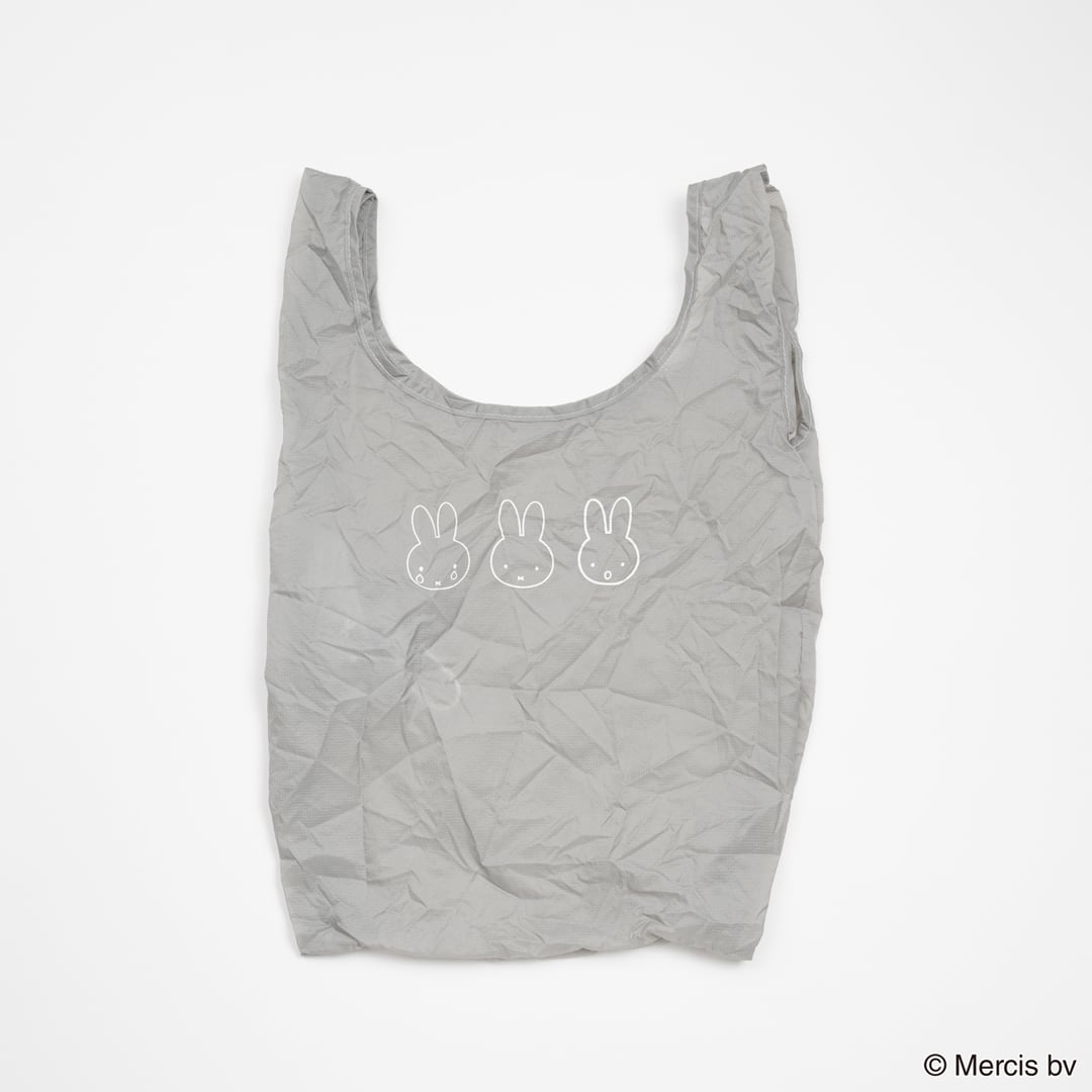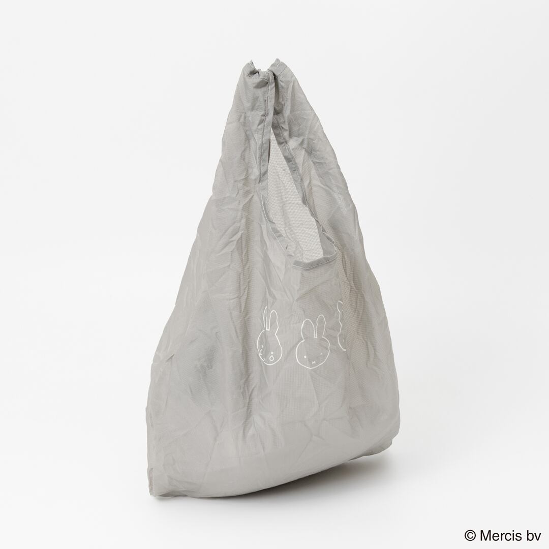 ごく薄い生地で出来たコンパクトなショッピングバッグ。丸いカバーにMiffyの顔がプリントされています。便利なカラビナ付き。SIZE:バッグW250×H450×(D40)mm カバーφ50mm 素材:ナイロン