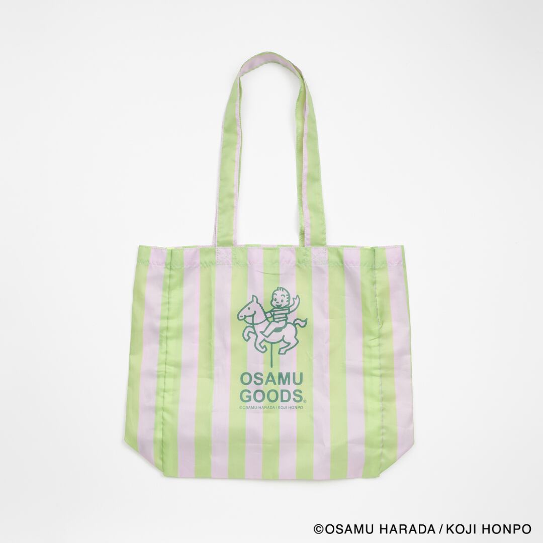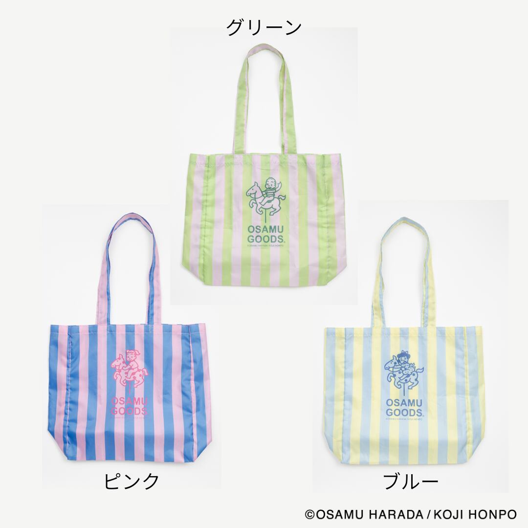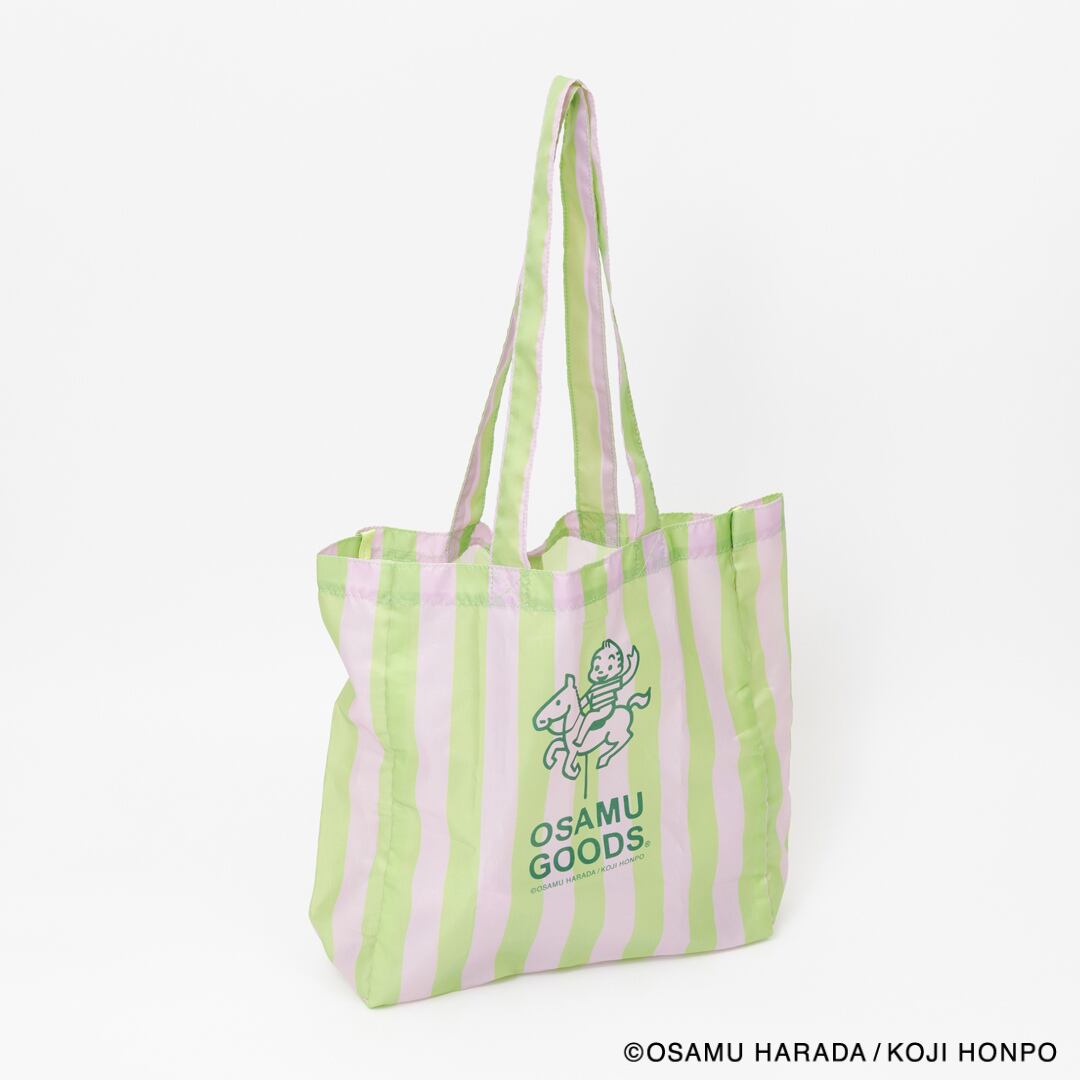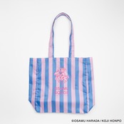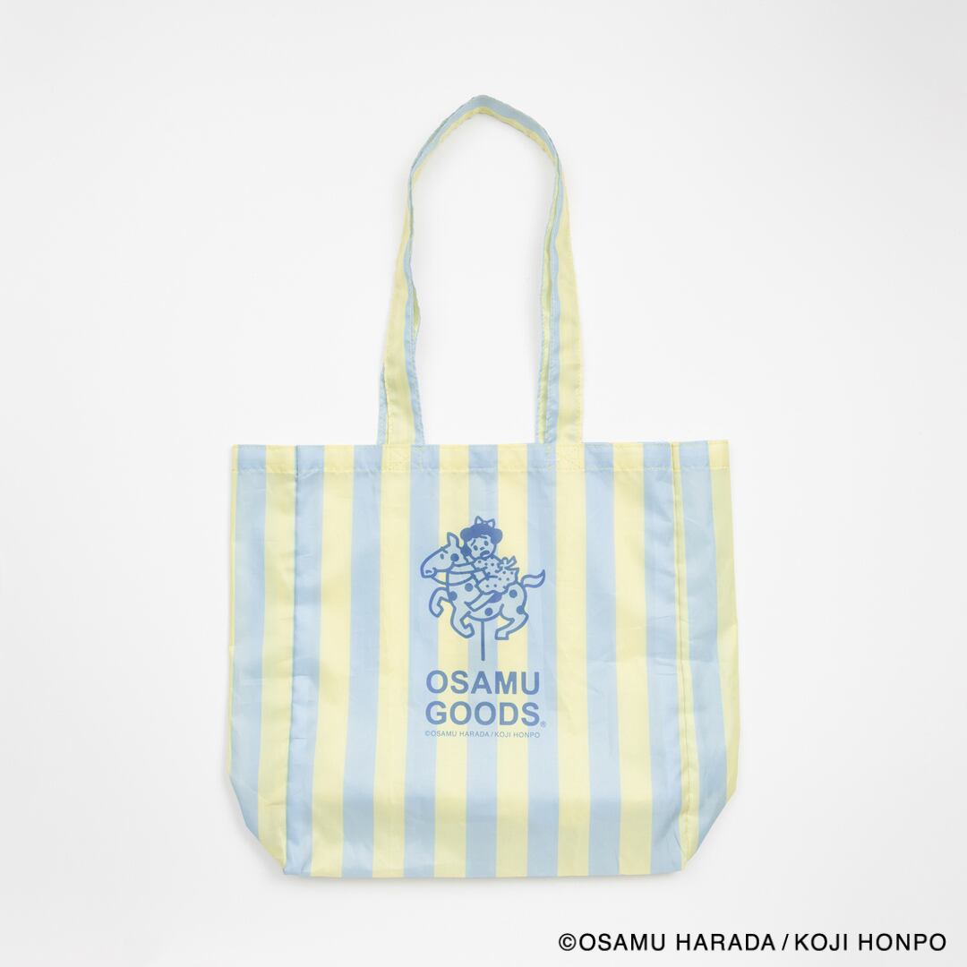 メリーゴーランドに乗っているイラストと、ストライプの組み合わせが目を引くデザインのトートバッグです。A4サイズがすっぽり入る使いやすいサイズです。SIZE:W300×H320mm 素材:本体:ポリエステル