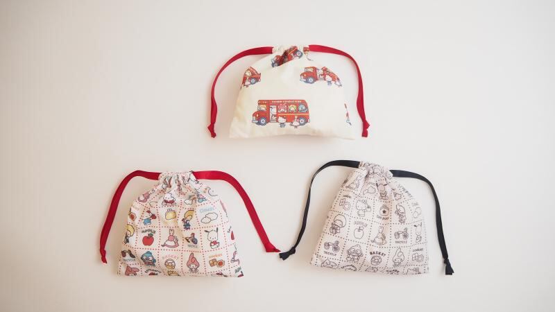 ベーシックなデザインのサンリオキャラクターが登場。サニタリーアイテムやコスメがざっと入る便利なサイズ感の巾着。全11柄 SIZE:W180×H180mm 素材:本体:ポリエステル