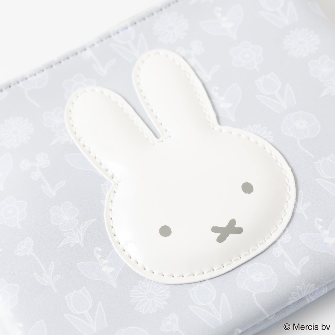 ミッフィーの立体的なアップリケと優しいカラーのお花がプリントされたギフトにぴったりのシリーズ。ちょっとしたコスメや目薬が入るサイズで、背面にはティッシュポケット付き。全2色 SIZE:W145×H110mm 素材:表地:合成皮革、裏地:ポリエステル