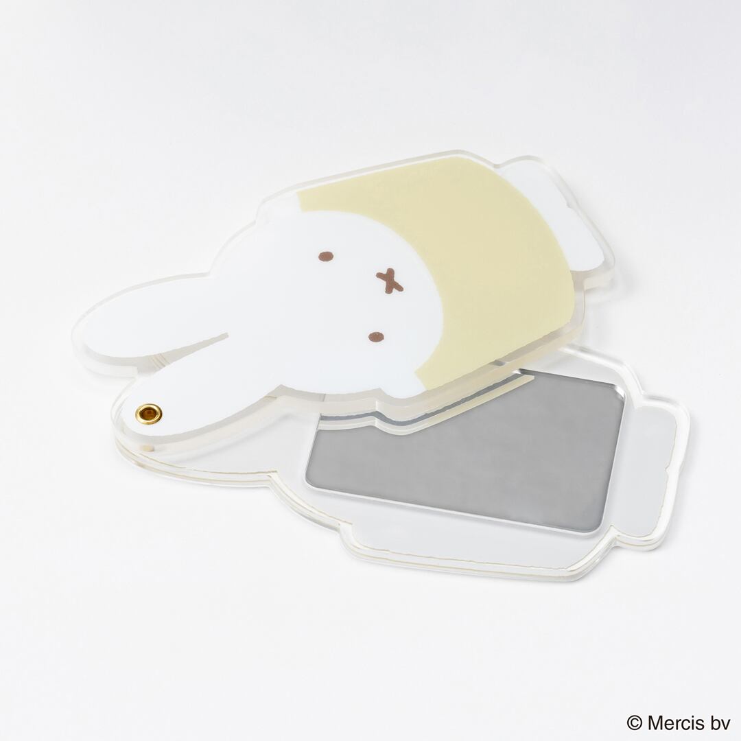 ミッフィーとボリスのアクリルダイカットシリーズです。バッグの中にもスリムに収まるスライド式のミラーです。全3柄 SIZE:W62~84×H90~108mm 素材:本体:アクリル